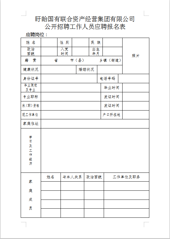 本次招聘具體崗位及條件詳見《盱眙國有聯(lián)合資產(chǎn)經(jīng)營集團(tuán)有限公司公開招聘崗位信息表》(附件1)。